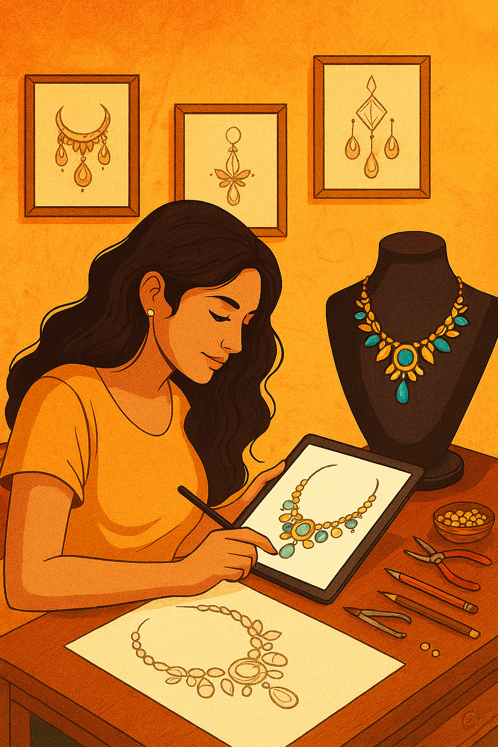 आपल्या देशाची प्रचंड लोकसंख्या, वाढलेली क्रयशक्ती, स्वत:ला सजवून आणि नटवून घेण्याची देशाच्या या टोकापासून त्या टोकापर्यंत असलेली हौस, सोन्याचे शक्य झाले नाही तर इतर धातू आणि खडे – मणी यांचे दागिने विकत घेण्याकडे असलेला कल बघता, आभुषणे आणि दागिने डिझाइनच्या क्षेत्रात करिअरच्या विविधांगी संधी मिळू शकतात. नावीन्याचा शोध घेण्याची व सर्जनशीलता, कल्पकतेने समरसून काम करण्याची इच्छा व उर्जा असल्यास हे क्षेत्र समाधान आणि संपन्नता देण्यास समर्थ आहे.