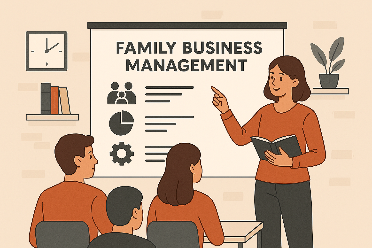 एस.पी.जैन इंस्टिट्यूट ऑफ मॅनेजमेंट ही आपल्या देशातील व्यवस्थापन विषयक शिक्षण आणि प्रशिक्षण देण्याारी महत्वाची संस्था आहे. या संस्थेमार्फत ग्लोबल फॅमिली मॅनेज्ड बिझिनेस प्रोग्रॅम, हा एक वर्ष कालावधीचा आंतरराष्ट्रीय दर्जाचा अभ्यासक्रम सुरु करण्यात आला आहे. कौटुंबिक व्यवसाय किंवा व्यापार किंवा उद्योगाच्या कार्यान्वयन आणि व्यवस्थापनात येणाऱ्या विशेष स्वरुपाच्या अडचणी आणि समस्यांच्या सोडवणुकीचे तंत्र या अभ्यासक्रमात शिकवले जाते. या अभ्यासक्रमात विविध कौटुंबिक व्यवसायातील प्रकरणाचा अभ्यास (केस स्टडीज),चर्चा, वादसंवाद, आणि प्रत्यक्ष जगातील साधने यांचा समन्वय साधून निर्णय प्रक्रियेची नवी दिशा दाखवली जाते. याव्दारे संसाधनाचे सुयोग्य व्यवस्थापन, संघर्षाचे नियंत्रण, नव्या व्यावसायिक कल्पनांचा पुढाकार, मालकीहक्काचे नियंत्रण, दीर्घ कालावधीसाठी ग्राहकांना बांधून ठेवणे, कौटुंबिक नातेसंबंध दृढ करणे, व्यवसाय वृध्दी करण्यासाठीच्या नव्या आणि प्रभावी संकल्पना कळतात व त्यांच्या वापराचे तंत्र आणि कौशल्य प्राप्त करता येते. हा अभ्यासक्रम मुंबई,दुबई आणि सिंगापूर या तीन ठिकाणी शिकवला जातो. या क्षेत्रातील आंतरराष्ट्रीय कीर्तिचे अध्यापक व तज्ज्ञ अभ्यासक्रम शिकवायला येतात. कौटुंबिक व्यवसाय व्यवस्थापन विषयीचा हा अभ्यासक्रम विशेषत्वाने तयार करण्यात आला असला तरी त्यास कोणत्याही संस्थेने मान्यता प्रदान केलेली नसल्याचे संस्थेने स्पष्ट केले आहे.