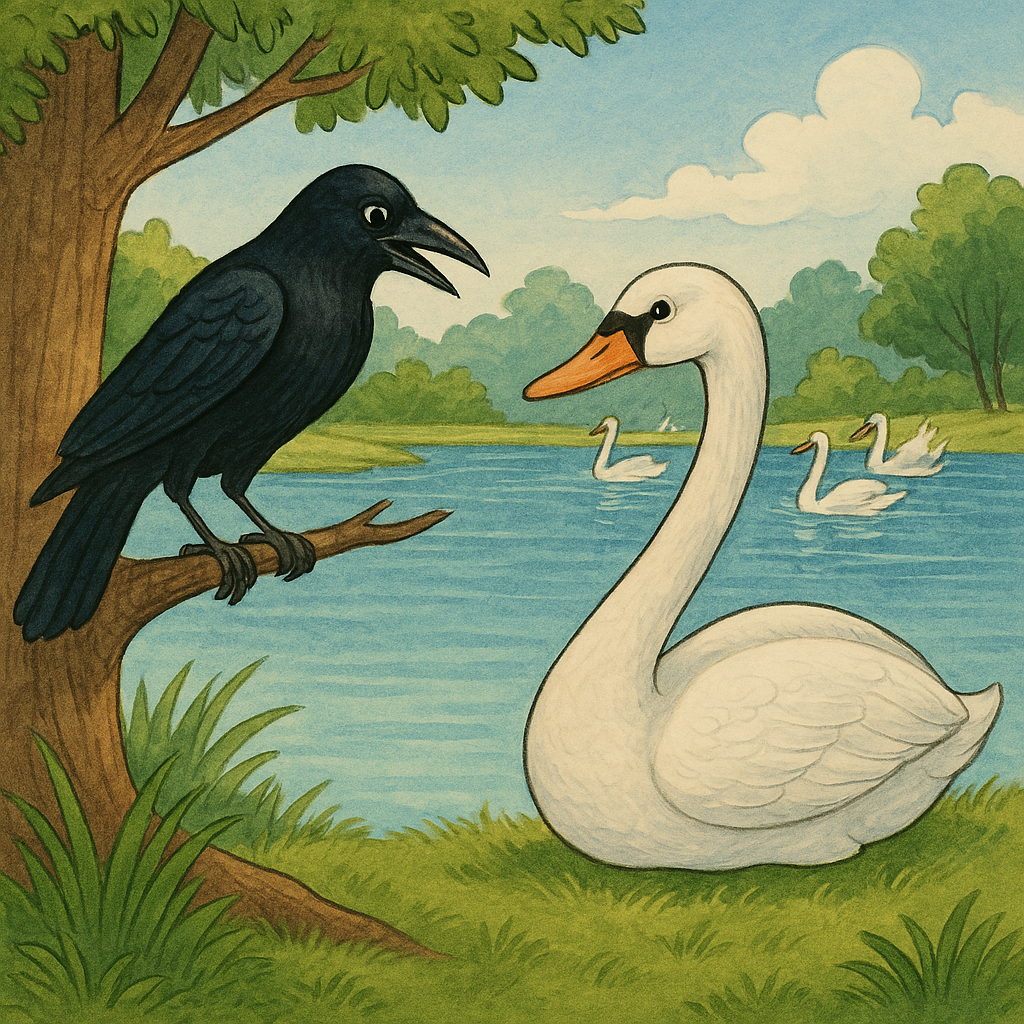 “राजहंसाचं म्हणणं त्या कावळोबास पटलं नाही. राजहंसाशिवाय कुणीही पांढरे शुभ्र होऊ नये, असं त्याला वाटत असल्यानेच तो हे सांगतोय, असं या कावळोबांना वाटलं. तसं त्यांनी बोलूनही दाखवलं. राजहंसाने पुन्हा समजावलं, पण आपले पूर्वज काही ऐकण्याच्या मनस्थितीतच नव्हते. त्यांनी राजहंसाकडे दुर्लक्ष केलं. राजहंसानेही त्याचा पिच्छा सोडला. ज्याचं करावं भलं, तो म्हणतो माझंच खरं, असं म्हणून राजहंस आपल्या सवंगड्यांसोबत खेळू लागला.