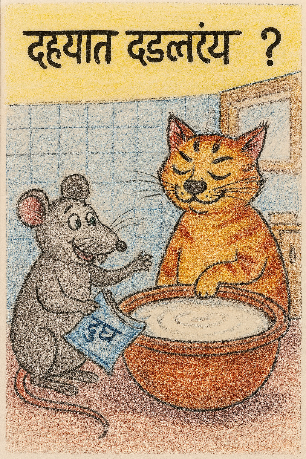 ”अरे, मालकीनबाईंनी दही तयार करण्यासाठी दूधात विरजण घातलय. ”
