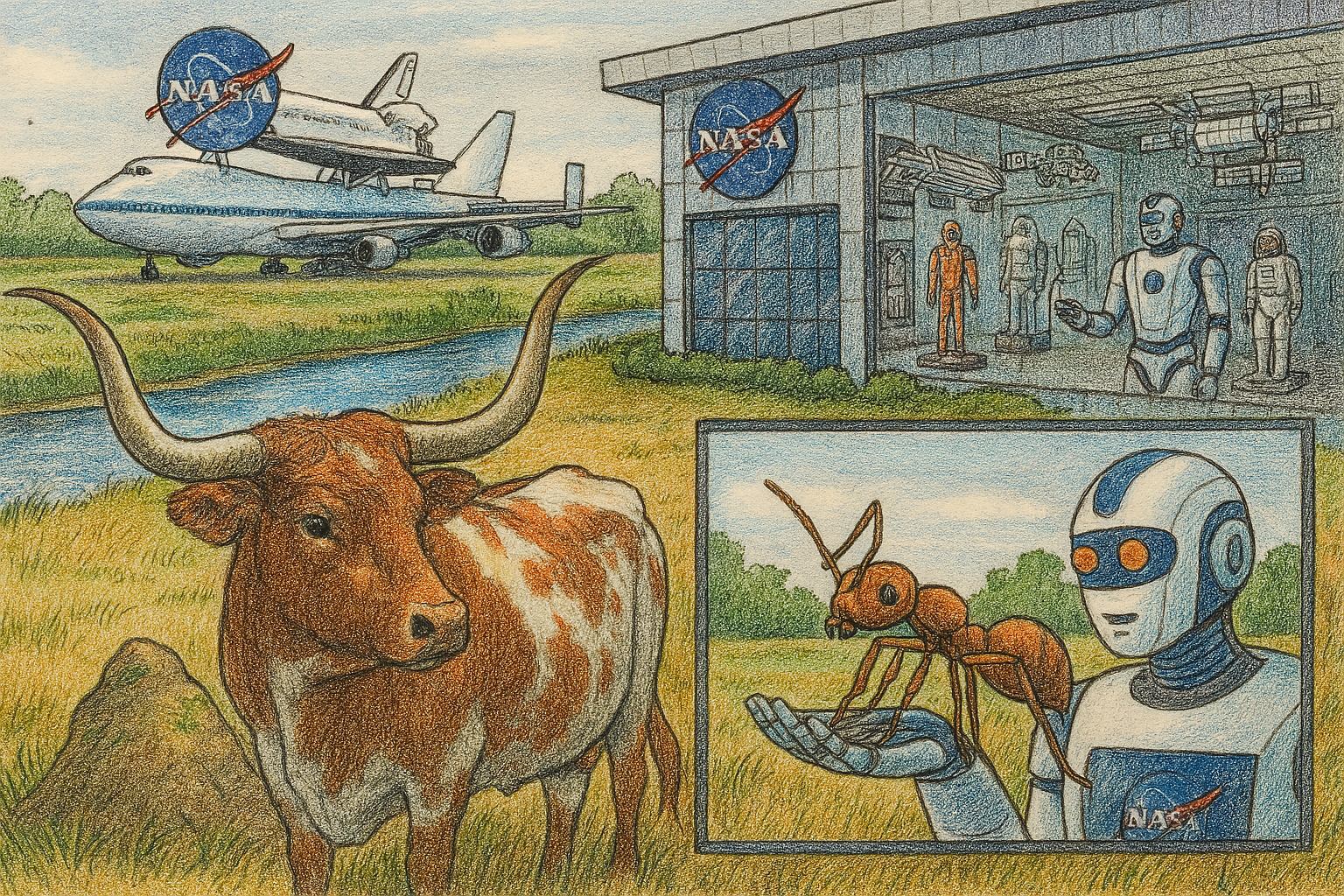 अमेरिकेच्या, ह्युस्टन शहरातील, नासा (नॅशनल ॲरोनॉटिक्स ॲण्ड स्पेस ॲडमिनिस्ट्रेशन) अंतरिक्ष विज्ञान केंद्राला लागून असणाऱ्या, एका लहान नदिच्या बाजूने असणाऱ्या, शेतातील कोपऱ्यात, ऑस्टिन प्रांताचा प्रतीक म्हणून वापरल्या जाणाऱ्या, लाँगहार्न म्हणजे मोठ्या शिंगाचे बैल प्रदर्शनासाठी ठेवले आहेत. त्याच्या आसपासच राणीमुंगीचा किल्ला होता. तो जमिनीत खोलवर होता. त्यावर बरंच गवतही उगवलं होतं. त्यामुळे अशा किल्ल्याची, कुणाला कल्पना नव्हती.