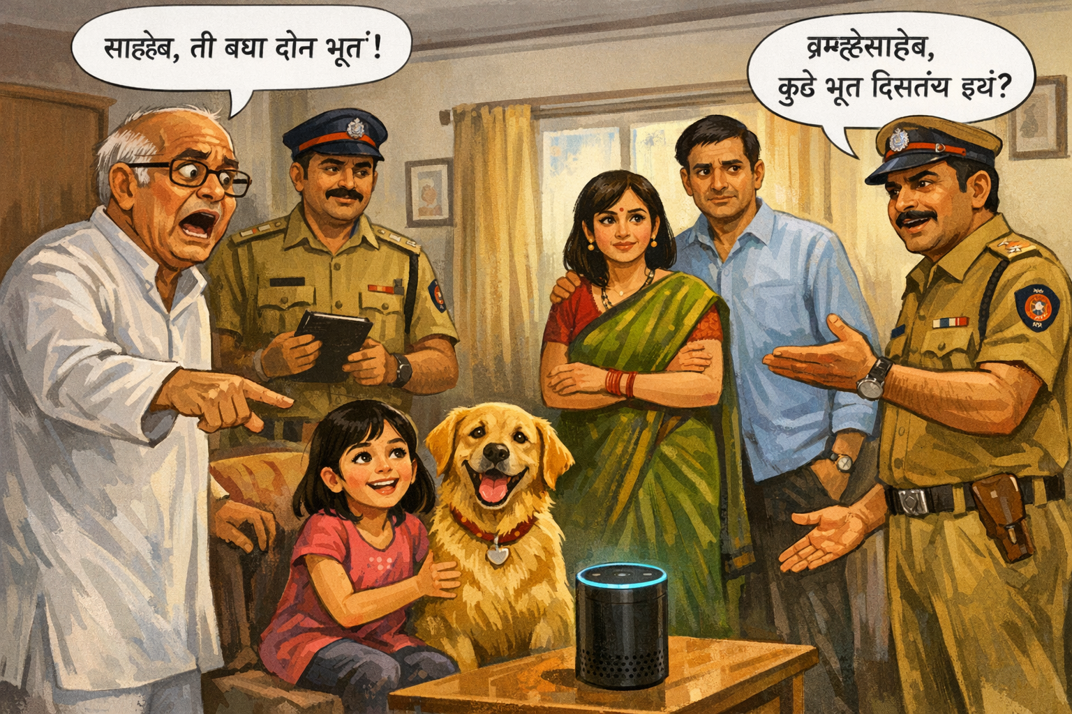 अलेक्सा गोर्जी आणि अलेक्झांडरची चांगलीच मैत्री झाली होती. गोर्जी त्याच्याशी गप्पा करायची. तोही तिच्याशी कधी कुंईकुंई, तर कधी भूईंई भौऊउ करत बोलायचा. असा दोघांचा संवाद सुरु असताना, एके दिवशी शेजारचे ब्रम्हेकाका तेजोमयीच्या घरी आले. त्यांना हे दृष्यबघून धक्काच बसला. त्यांना ही भुताटकी वाटली. एक यंत्र, डॉगीशी बोलतो काय, तो प्रतिसाद देतो काय, हे त्यांना पचनी पडलं नाही. ते आल्या पावली माघारी वळले.