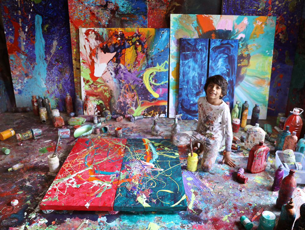 रंगाशी खेळत खेळत तो चित्रकलेच्या विविध ‘कला” आत्मसात करत गेला. वयाच्या चौथ्या वर्षी त्याच्या एकट्याच्या (सोलो) पेंटिग्जंचं प्रदर्शन कॅनडात लागलं. ही प्रदर्शनी दोन महिने तिथे होती. त्याची सगळी चित्रं चार दिवसात विकल्या गेली. गेल्या वर्षीच्या जून-जुलैमध्ये अमेरिकेतील लागुना बीच, तोहोइ लेक, लास वेगास, की वेस्ट आणि फोर्ट लौडेरडेल येथे त्याच्या चित्रांचं प्रदर्शन भरलं. त्यानंतर त्याला यंदा जानेवारी ते मार्च या कालावधीत अमेरिकतील चार प्रमुख आर्ट गॅलरित (कला दालन) एकल प्रदर्शिनीसाठी निमंत्रित केलं गेलं. आतापर्यंत जगातील वेगवेगळया आर्ट गॅलरिंमध्ये १९ एकल आणि समुह कला प्रदर्शनिमध्ये तो सहभागी झालाय. नुकतंच त्याचं एक पेंटिग १६ हजार ८०० डॉलर्सला म्हणजेच १४ लाख ८७ हजार रुपयांना विकलं गेलं. आतापावेतो त्याच्या विकल्या गेलेल्या कलाकृतिंची किंमत ३ लाख डॉलर म्हणजेच २६ कोटी ५ लाख ५६ हजार रुपये इतकी भरते. तो स्वत:ला अर्मूत (ॲबस्ट्रॅक्ट) कलावंत मानतो. त्याच्यावर जॅकसन पोलॉक या जागितिक कीर्तिच्या चित्रकाराचा पगडा आहे. पण त्याचबरोबर त्याला प्राणी, डायनोसार, ड्रॅगन यांचीही चित्र काढायला आवडतात.