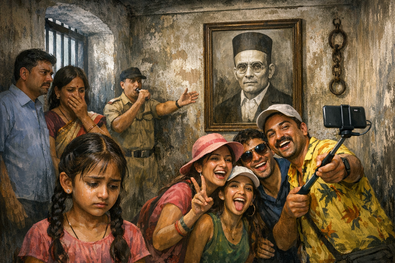 सेल्फीच्या नादात हे असं बेशिस्तीत वागून स्वातंत्र्यवीरांचा आपण अपमानच करतोय असं कुणालाही वाटत नव्हतं. स्वातंत्र्यवीरांच्या स्मृती त्यांच्यासोबतच्या सेल्फीतून नव्हे तर त्यांची प्रखर देशभक्ती, निष्ठा, सहनशीलता, बुध्दिमत्ता, शिस्त, दुर्दम्य इच्छाशक्ती, अजोड साहस, चारित्र्य या गुणांमधून मनात नि ह्रदयात कोरायला हव्यात, हे कुणाच्याही गावी नव्हतं. हे सगळं बघून तेजोमयीस आश्चर्यासोबत वाईट वाटलं. तिच्या डोळ्यात अश्रू आले. चला चला बाहेर पडा, असे शिट्टी वाजवून शिपायाने आठवण करुन दिली. ‘स्वातंत्र्यवीर, आम्हाला क्षमा करा’, असं काहीसं पुटपुटत तेजोमयी आईबाबांसमवेत कोठडीच्या बाहेर पडली.