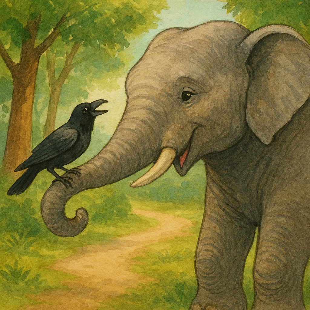 “हत्तीलाच माझ्याशी मैत्री करण्याची सद्बुध्दी दे आणि त्याला माझ्याकडे धाड अशी मी देवाकडे प्रार्थनाच करतो ना!”कावळोबा उत्साहानं म्हणाला.